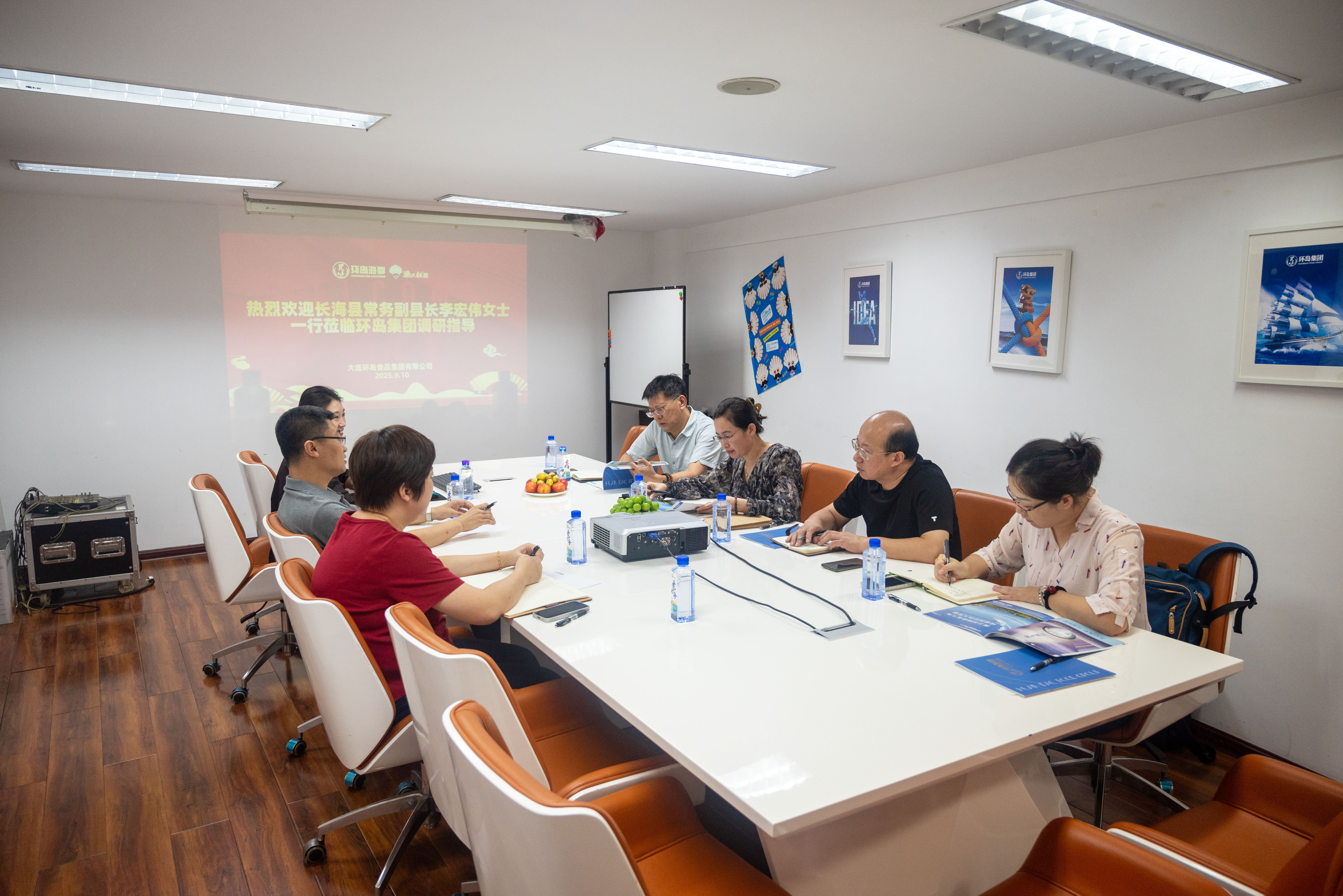 9月10日,長海縣常務副縣長李宏偉 攜縣發(fā)改局、商務局、統(tǒng)計局等部門領導 蒞臨環(huán)島集團調研指導 調研組詳細了解企業(yè)在海參、海鮮零食、預制菜等方面的發(fā)展情況。座談會上,王振東董事長匯報了企業(yè)發(fā)展現(xiàn)狀與規(guī)劃。 李宏偉副縣長對環(huán)島集團在推動地方海洋產(chǎn)業(yè)發(fā)展中的作用表示肯定,并表示政府將持續(xù)營造良好發(fā)展環(huán)境,助力企業(yè)做優(yōu)做強。 環(huán)島集團將不負厚望,致力于打